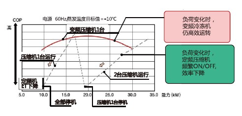 ■與交流變頻對比,直流變頻冷凍冷藏系統(tǒng)COP更高,更節(jié)能