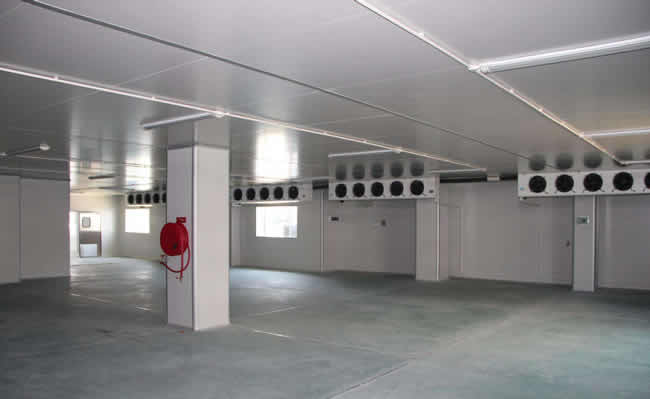 肉類冷凍庫設計建造時,通常會采用150mm聚氨酯雙面彩鋼板,其特點有重量輕、安裝便捷、保溫隔熱能搶、阻燃效果好等優(yōu)勢。