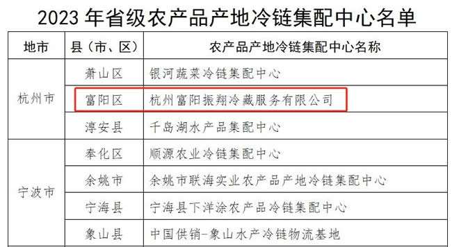 富陽振翔冷庫被認(rèn)定為“省級(jí)農(nóng)產(chǎn)品產(chǎn)地冷鏈集配中心”
